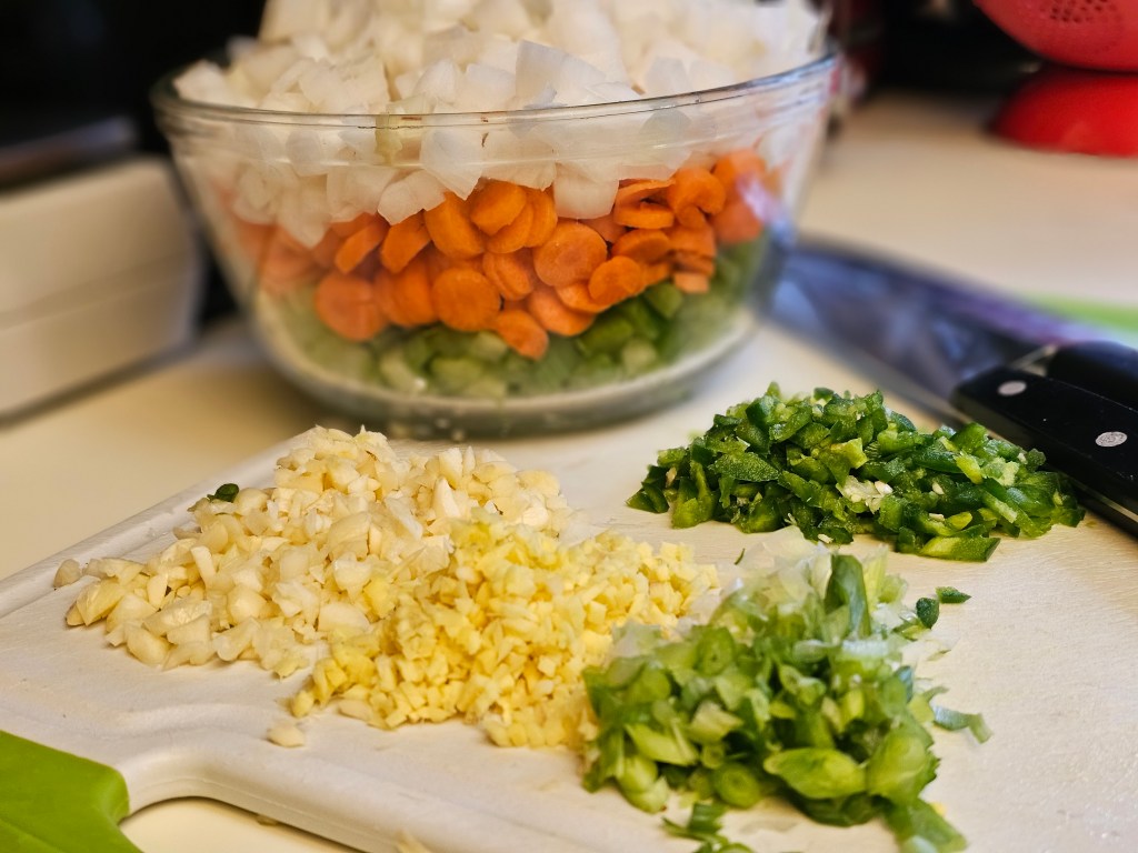 Asian cuisine is known for its aromatic ingredients, and my daughter got to pick the stars of our flavor show. She sliced ginger into thin matchsticks, finely chopped scallions, and minced garlic, filling the kitchen with delightful scents.