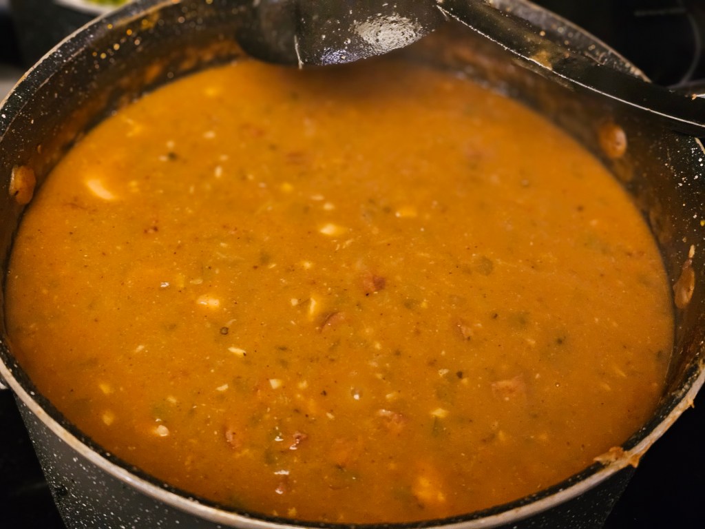6. Brown Roux: A traditional brown roux is the heart of our Gumbolaya, providing a deep, nutty flavor and velvety texture.