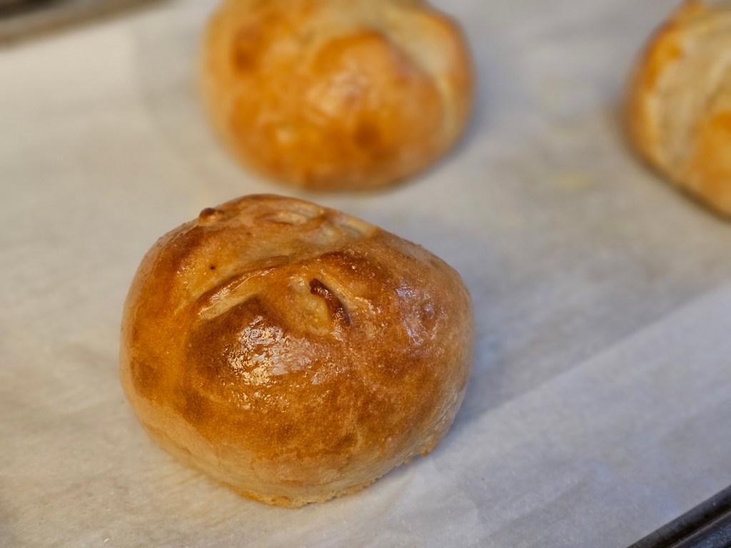 – Optionally, you can brush the bread bowls with a bit of milk or egg wash for a golden crust.