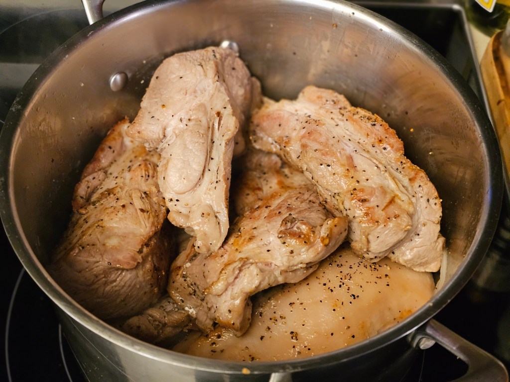 3. Once the pork is browned, remove it from the pot and set it aside.