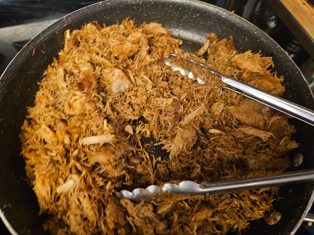 6. Shred the Pork: Using two forks, shred the tender pork directly in the pot. Increase the heat to medium and cook, uncovered, for another 10-15 minutes, or until the edges of the pork become crispy.
